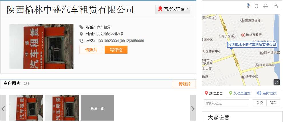 百度商戶(hù)地圖展示-陜西榆林中盛汽車(chē)租賃有限公司